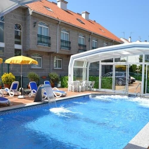 El hotel Playa Compostela dispone de habitaciones elegantes con baño, WiFi gratuita y TV. Es posible contemplar la ría desde las habitaciones y disfrutar de las bellas puestas de sol desde la terraza del hotel.