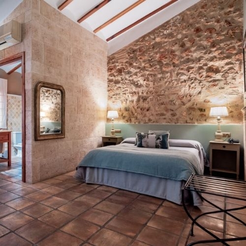 La Junior Suite, con una decoración completamente diferente, es simplemente única. Esta suite recibe luz natural que realza la belleza de las piedras que compone su pared, diseñada en un estilo rustico y combina colores fuertes que contrastan a su vez con maderas nobles.