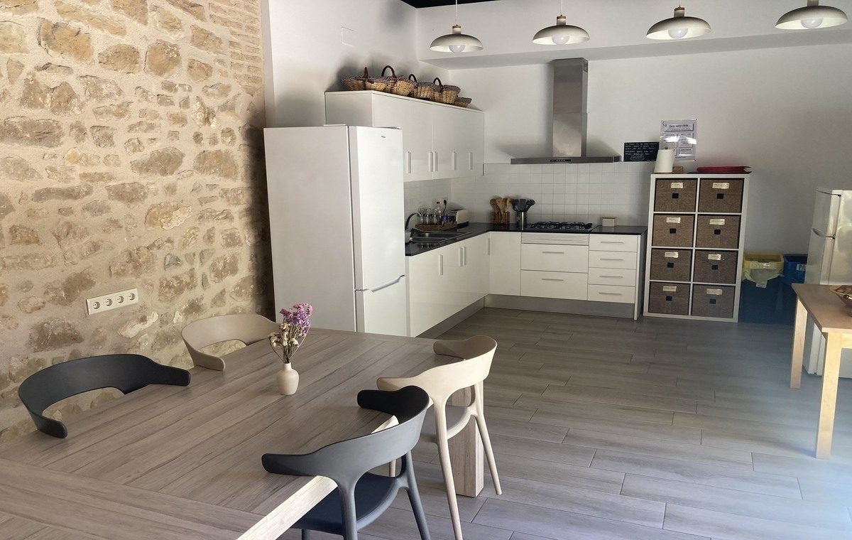Consta de set dormitoris amb bany privat; espais comuns per compartir; una zona per deixar bicicletes, netejar-les i reparar-les; una cuina
