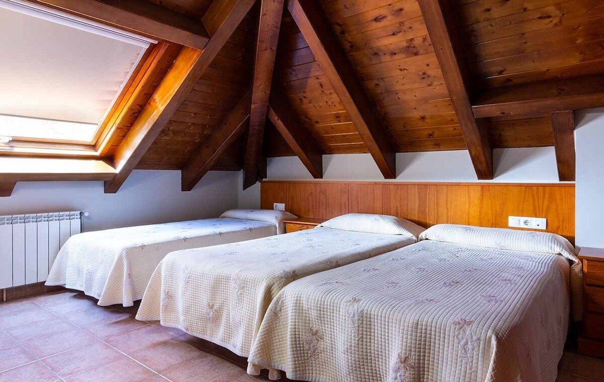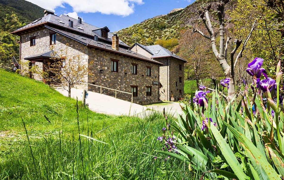 Disposem d´una casa rural per a famílies i grups amb un total d´11 places, dues cambres de bany, cuina menjador, barbacoa al jardí i zones comunes. També disposem d´un petit hostal amb una total de 7 habitacions totalment equipades amb tv, fil musical… i espectaculars vistes a la vall, menjador i sala d´estar amb llar de foc. I dos apartaments duplex sota teulada amb excel·lents vistes a la Vall de Boi.