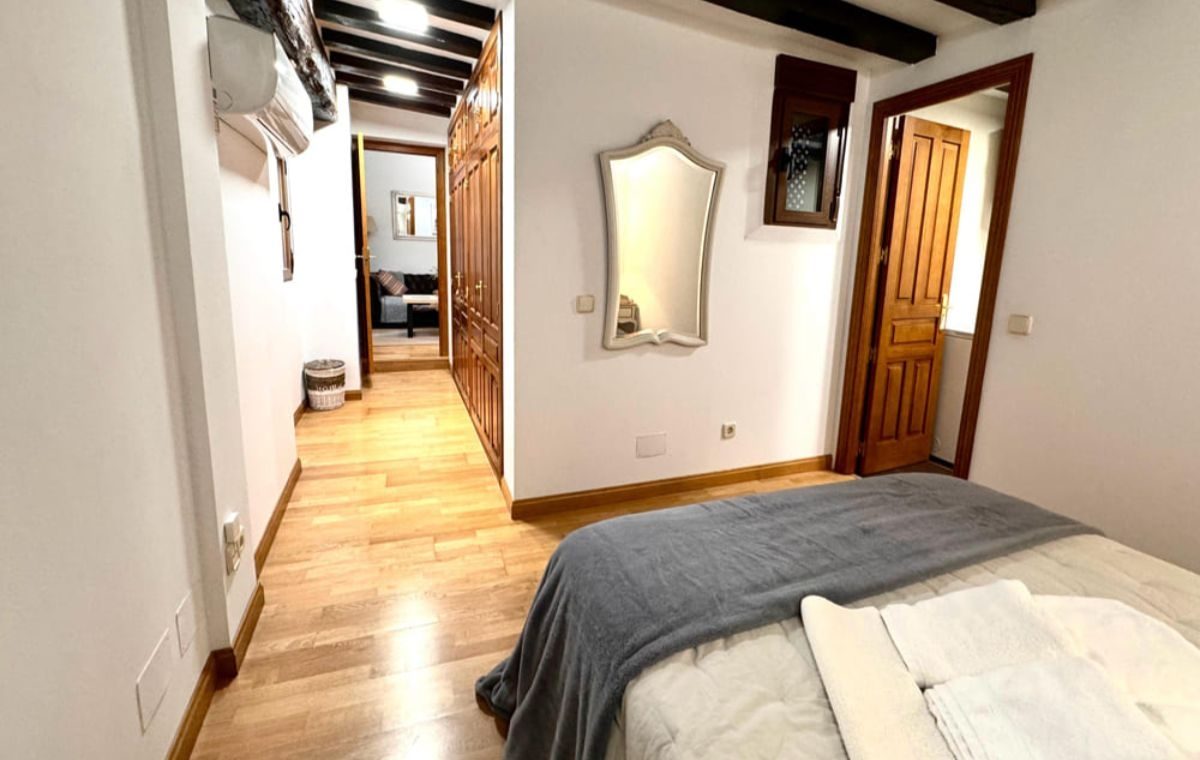 Situada en el segundo piso de un antiguo edificio del s. XIX, junto a la Catedral y la Plaza Mayor, en el mismo centro del casco histórico, desde donde podrás ir caminando a todos los monumentos y lugares de interés en tan solo unos minutos. Esta suite de 40 m2 para dos personas está equipada con todas las comodidades para hacer de tu estancia en Toledo un recuerdo inolvidable